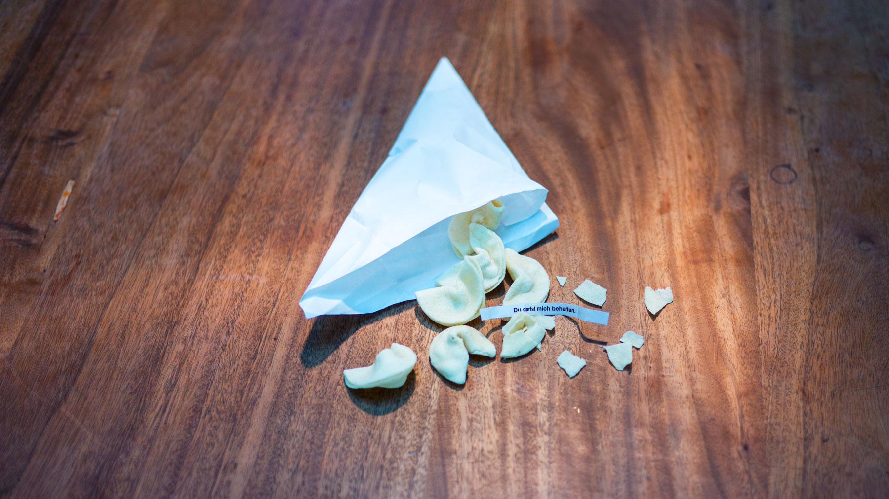 Zum Dessert gab es Fortune Cookies, die wir mit Konversations-Startern spickten. So haben sich für den Rest des Abends wildfremde Menschen gegenseitig interviewt.